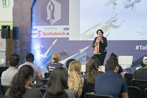 El ITESO participó en Talent Land con un stand muy concurrido y una serie de conferencias, una de ellas fue sobre "innovación disruptiva", impartida por Claudia Ibarra, profesora de la Escuela de Negocios.