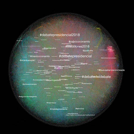 "El laboratorio hace ejercicios para ver cuáles son las tensiones, las atracciones y los vínculos que hay entre instituciones, candidatos, institutos políticos y medios de comunicación. Esos son los panoramas, a partir de la minería de datos a gran escala, con las herramientas que aquí mismo han diseñado", explica Enrique Páez Agraz, director del Departamento de Estudios Socioculturales (DESO) del ITESO que alberga el laboratorio.