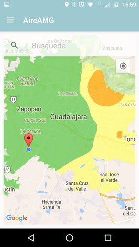 En Guadalajara también hay otras aplicaciones, que se limitan a presentar datos en tiempo real y muestran los resultados de la estación más cercana. "Por ejemplo, estás en Chapala y la estación más cercana es la de Las Pintas y es de la que te despliega información (aproximadamente a 40 kilómetros)", añade.